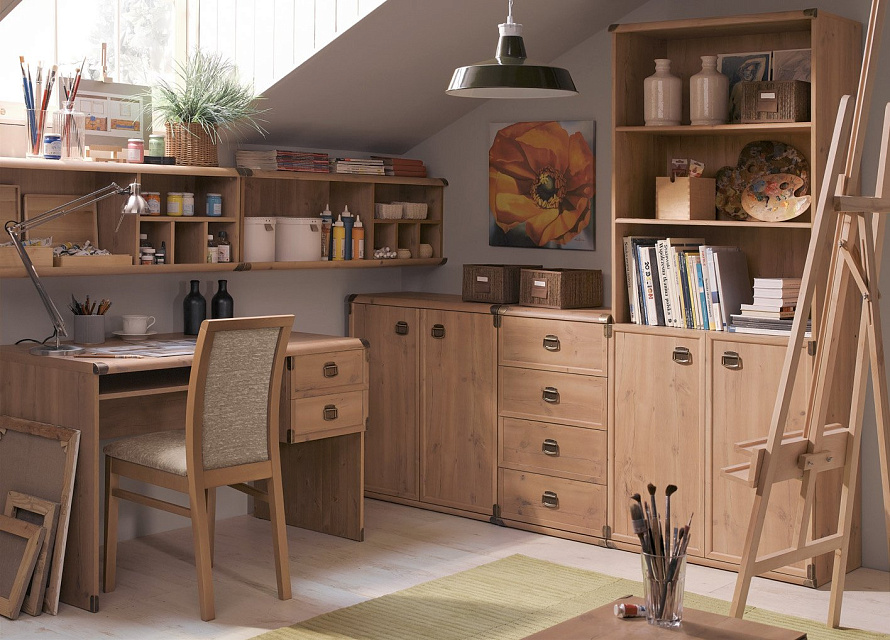 Коллекция Индиана не похожа ни на классическую, ни на современную мебельную моду. Имитация состаренного дерева, металлические накладки на углах, ярко выраженная древесная структура - далеко не все отличительные особенности коллекции. Благодаря широкому ряду элементов системы вы без труда обустроите молодежную.