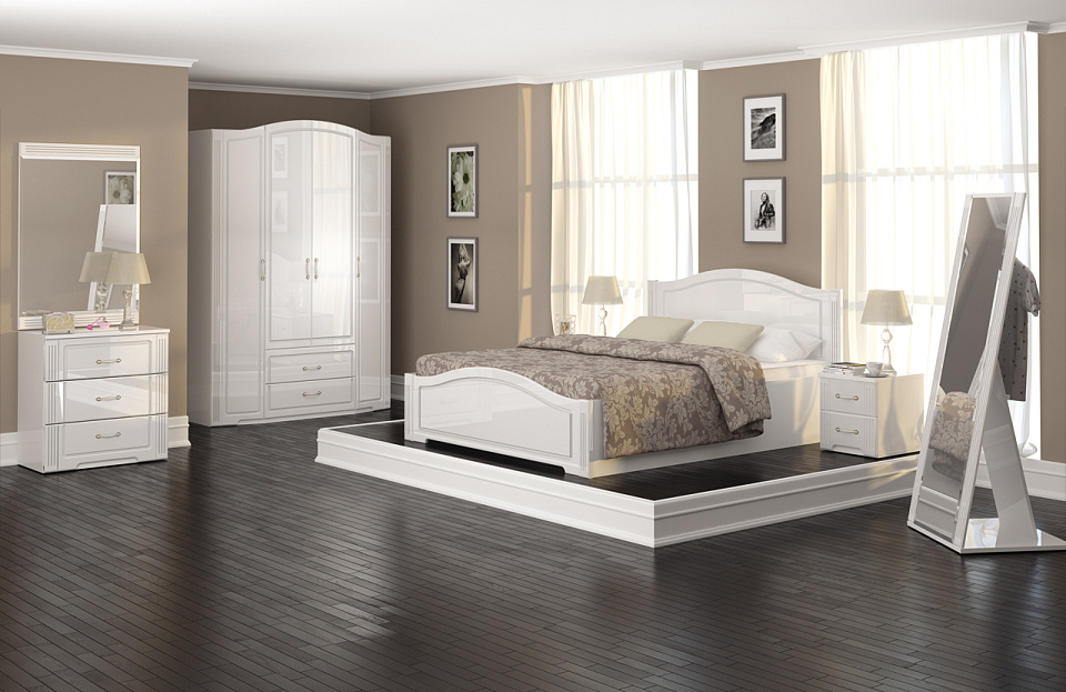Модульная серия Виктория выполнена в классическом стиле. Особенность серии - фасады МДФ с фрезеровкой, петли с доводчиком на всех фасадах, шариковые направляющие, возможность исполнения шкафов для одежды с зеркалами и без. В 4-х дверном шкафу для одежды установлена система складных фасадов, ручки металлические с белой вставкой, покрытие золото.