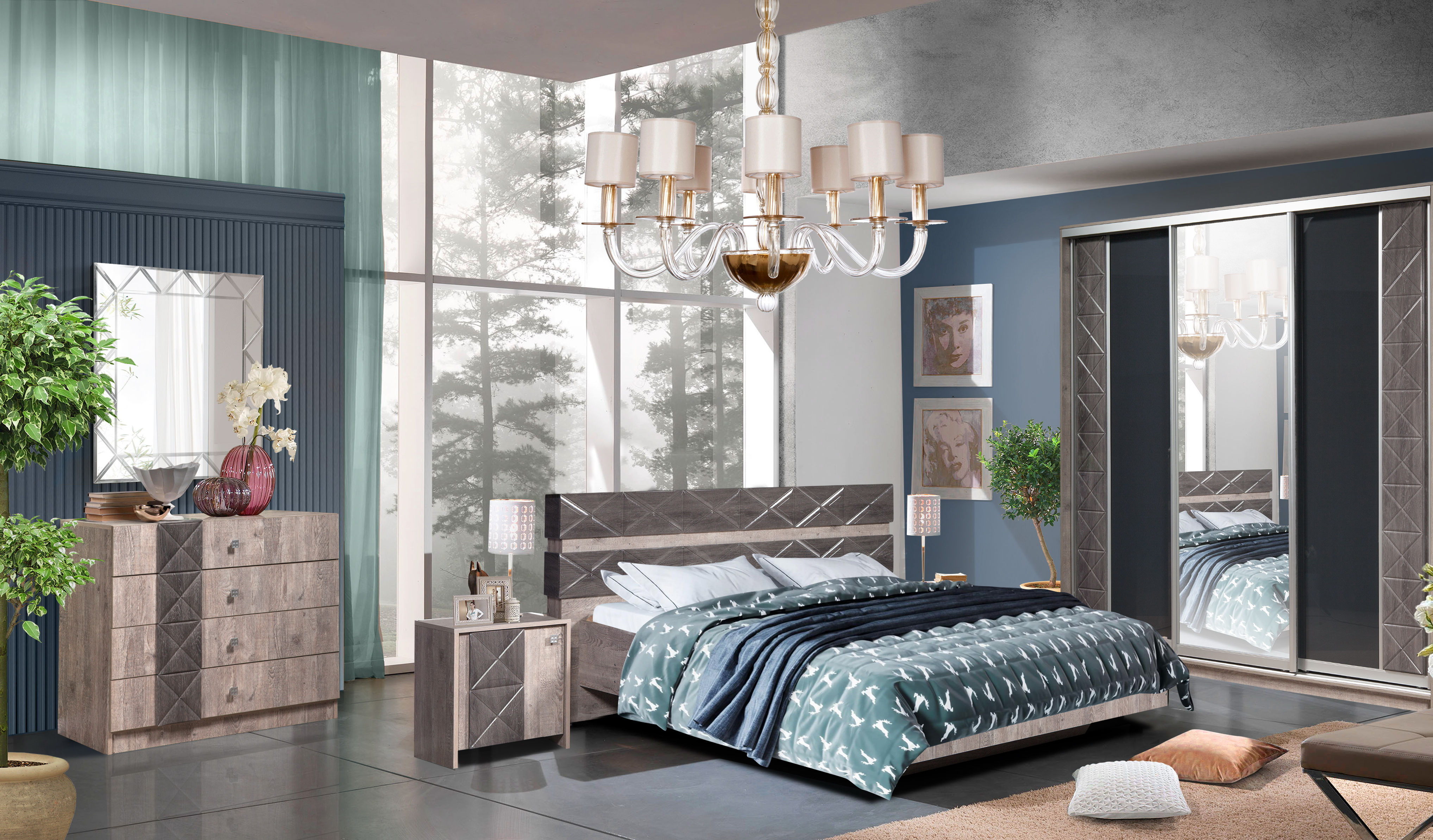 Изюминка спальни Монако - изголовья кроватей из эко-кожи. Изделие прослужит долго и сохранит свой презентабельный вид. А мягкие элементы создадут дополнительный комфорт и уют.