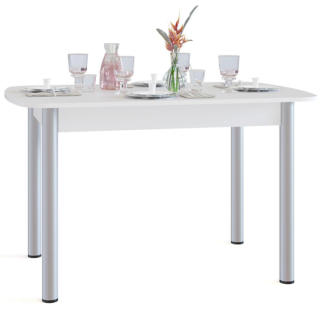 Модель оборудована раздвижным механизмом «бабочка», благодаря которому, за счет дополнительной вставки размером 446 мм, ширина столешницы увеличивается до 1646 мм. В сложенном состоянии вставка хранится в столе. Чтобы разложить стол, нужно раздвинуть столешницу в стороны, достать вставку и раскрыть ее между частями столешниц.