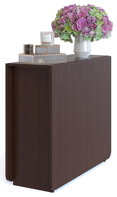 Изделие выполнено из ЛДСП толщиной 16 мм. Все края обработаны кромкой ПВХ толщиной 0,4 мм. Диаметр ножек составляет 60 мм.