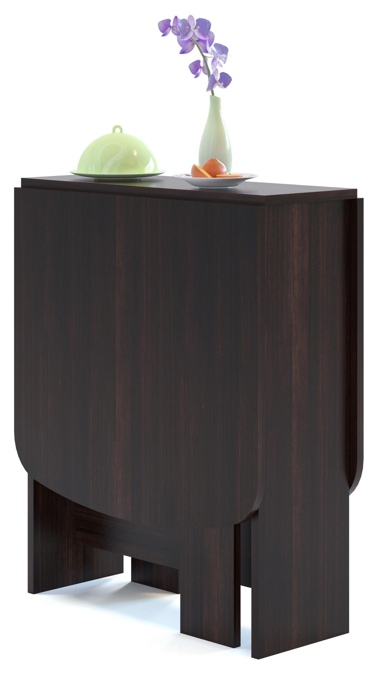 Компактный стол-книжка прекрасно подойдет для малогабаритной квартиры. В сложенном состоянии ширина стола всего 26 см. В разложенном виде стол превращается в полноценный обеденный стол. Также вы можете разложить стол только наполовину.
