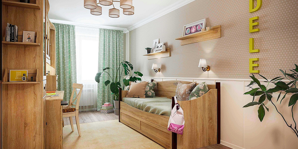 По-деревенски уютная мебель в комнату девочки подростка наполнит интерьер детской комнаты свежестью и солнечным настроением.