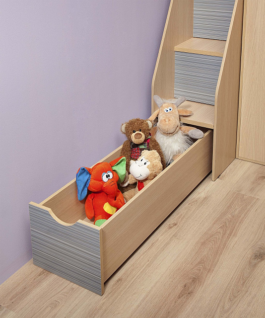 Помимо возможности творить, дети будут вам благодарны за уважение к их личному пространству. Кровать чердак из коллекции Калейдоскоп удовлетворяет потребности малыша в "гнезде", в котором можно уютно, укромно и безопасно отдохнуть после шумного дня в детском саду или школе. А в нижнем шкафу для них еще один сюрприз - небольшая ниша с дверцей, запирающейся на ключик. Доверие, только доверие!