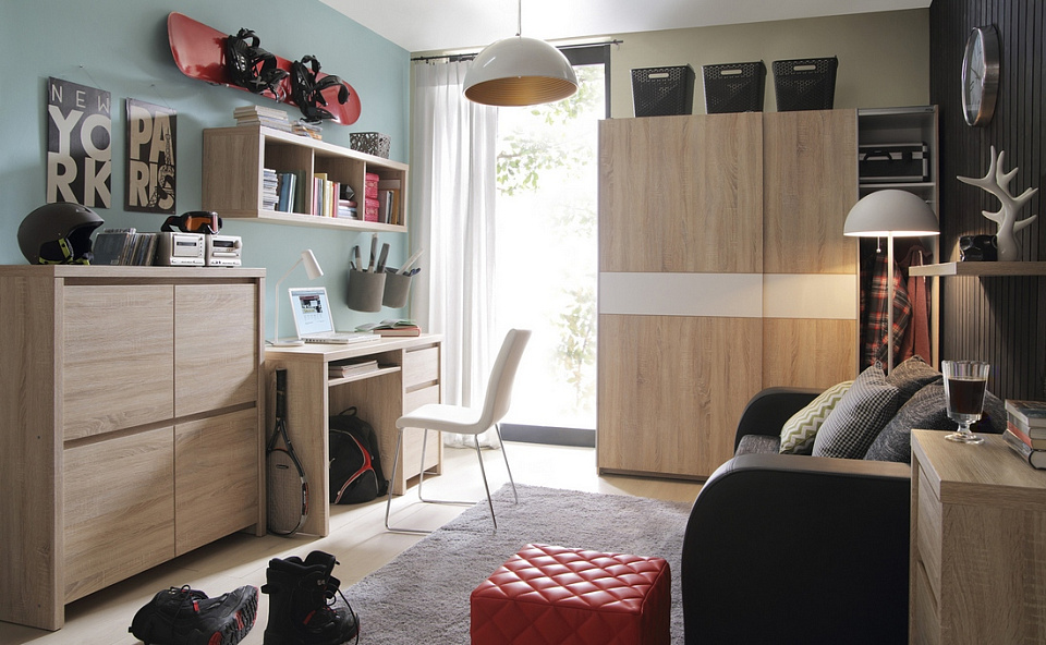 Большой выбор элементов поможет создать динамичный интерьер в детской комнате.