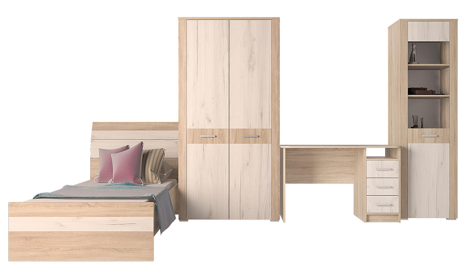 Набор Коламбия-5 спланирован для детской комнаты. Вариант обладает богатой древоподобностью и уникальной фактурой. А декоративные панели, объемные плиты, комбинированные в контрасте дверей и свежей фурнитуры, выделяют коллекцию Коламбия.