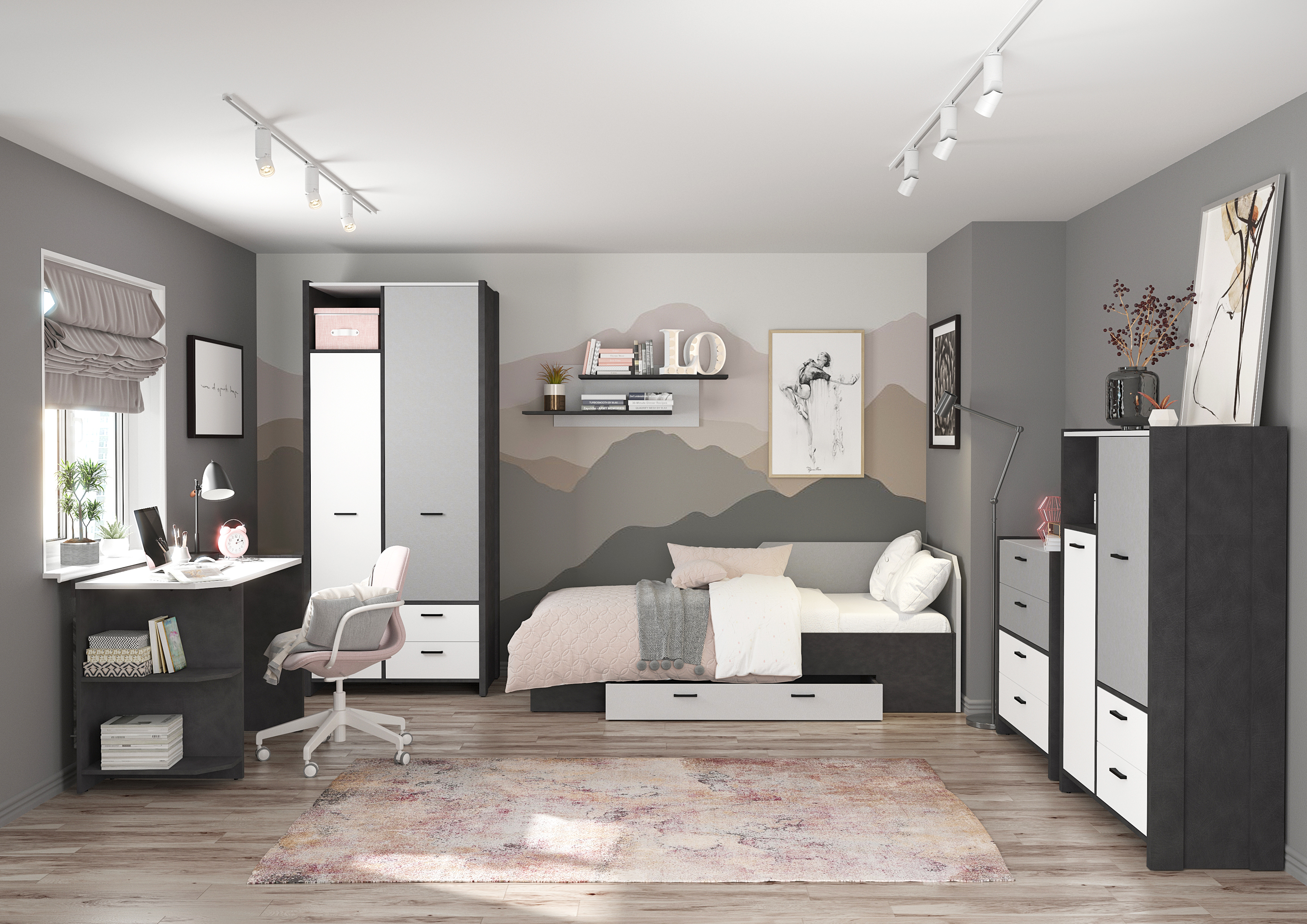 Молодёжная коллекция Kristoff поможет создать комфортное пространство для Вашего ребенка, чтобы он мог мечтать, учиться, весело играть и отдыхать. Коллекция мебели подойдёт для самых маленьких, подростков и не только… Kristoff соединяет в себе смелое сочетание цвета, современный дизайн и функциональность.