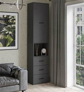 - Цветовая палитра: Преобладающий цвет антрацит впишется в разные интерьеры: лофт,минимализм. Нейтральный цвет также позволяет акцентировать внимание на деталях интерьера и аксессуарах.