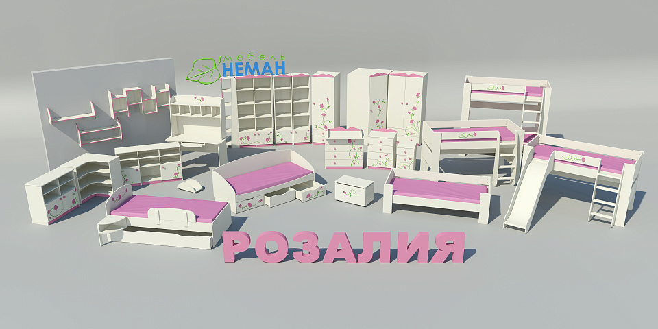 Мебель для детской комнаты Розалия — оригинальное решение, которое послужит прекрасным украшением для любой детской комнаты.