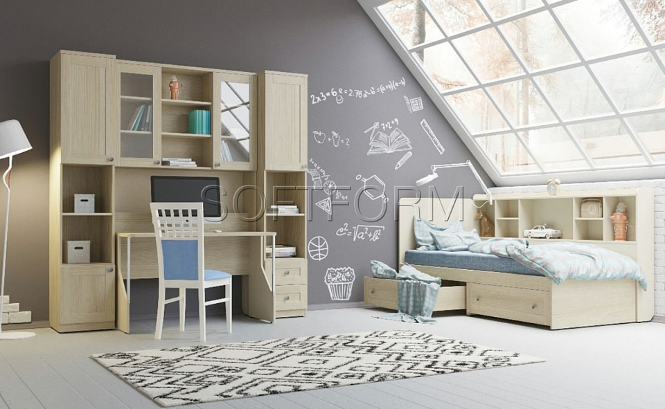 Коллекция ВЕРЕС позволяет обустроить детскую или молодежную комнату всем необходимым для учебы и отдыха подрастающего поколения. Модельный ряд коллекции включает в себя кровати, блоки для формирования двухъярусных спальных мест, шкафы, стеллажи, комоды, столы различных размеров.