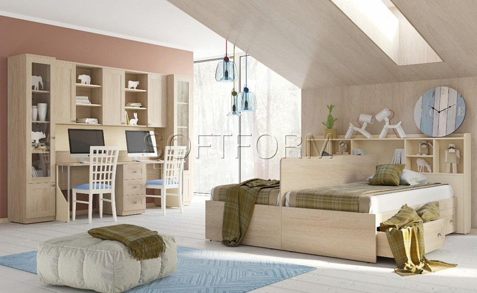 Отличительным преимуществом коллекции является многообразие вариантов стеллажей, которые прекрасно сочетаются с кроватями или столами и образуют оригинальные по дизайну мебельные композиции. Коллекция мебели ВЕРЕС - это отличный вариант создания условий для развития, отдыха, творчества и воспитания детей и молодежи.