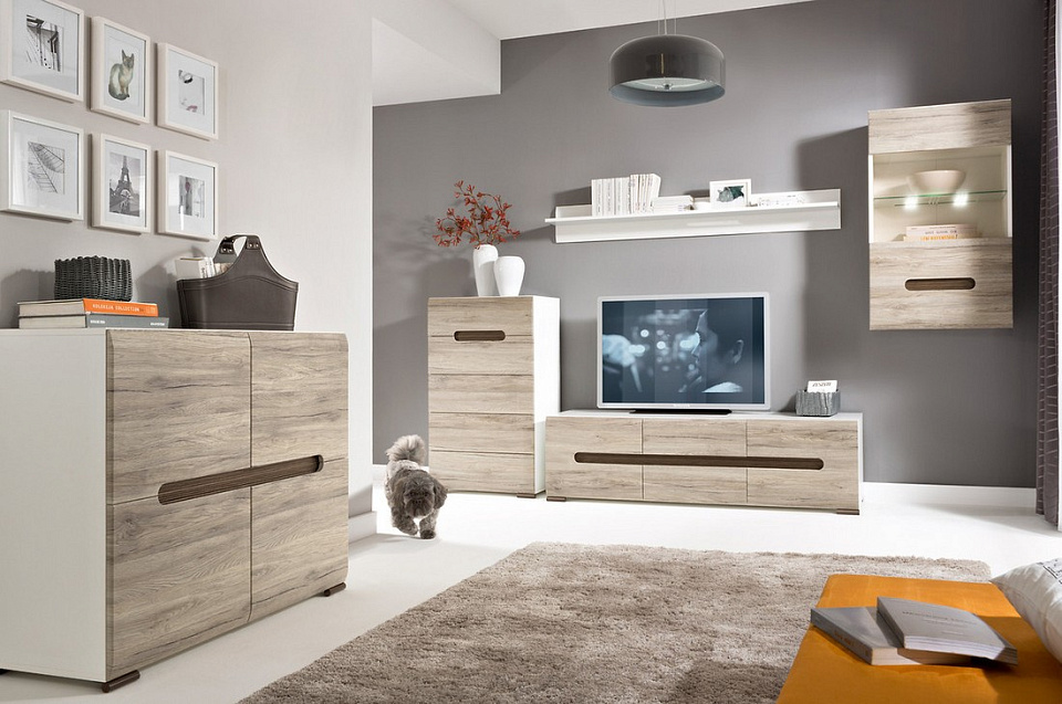 Тенденция заставлять гостиную вместительными шкафами и многочисленными стеллажами уходит. Популярность сейчас набирает удобная, практичная, но не громоздкая мебель. В коллекции Azteca вы найдете огромное количество шкафов со стеклянными витринами, навесных элементов, тумб и комодов, которые гармонично впишутся в интерьер новой уютной гостиной.