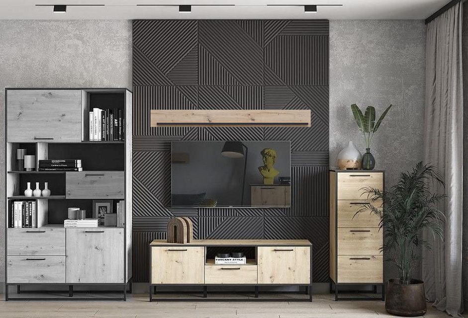 Коллекция мебели BROOKLYN выполнена в современных традициях стиля Лофт: здесь идеально сочетаются строгость и лаконичность, удобство и простота, креативность и практичность. Необычное конструкторское решение, не оставит равнодушным самого искушенного покупателя: тёмная кромка и матовые ручки удачно контрастируют с деревянной текстурой, а металлические опоры придают визуальную легкость элементам.