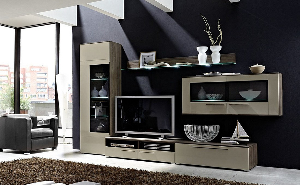 С помощью данного набора Вы с легкостью сможете создать свободный и светлый интерьер. Нельзя не обратить внимание на цветовое решение данного набора. Спокойные, мягкие, пастельные тона ясень коимбра темный и песочный блеск привносят в интерьер гостиной частичку тепла и света.<br>