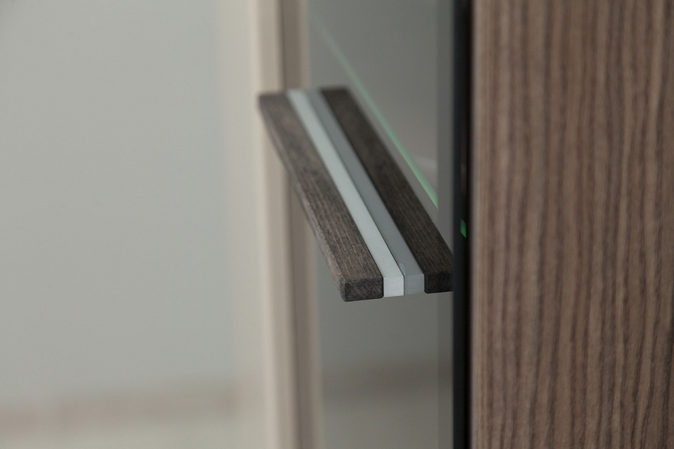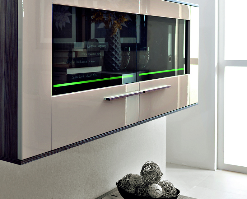 Стекла с графитовым оттенком в сочетании с подсветкой образуют изумрудный оттенок, который является изюминкой данного набора.<br>