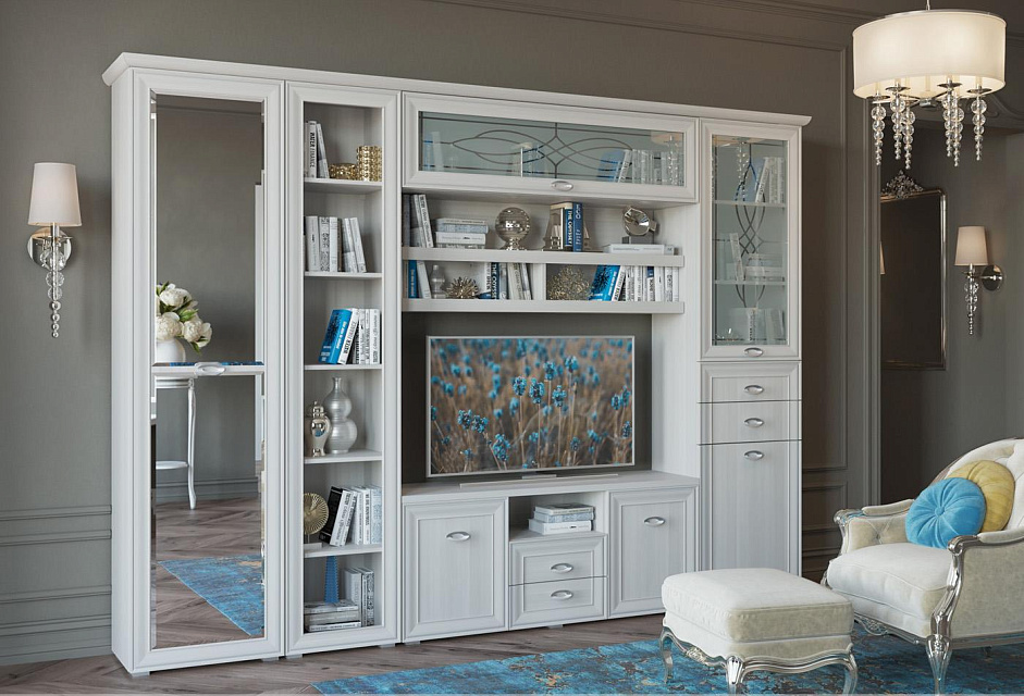 Шкафы и тумбы укомплектованы регулируемыми опорами L-20. Используется ручка скоба 96 мм (хром матовый). Удобное открывание и закрывание фасадов обеспечивают петли Salice производства Италии.