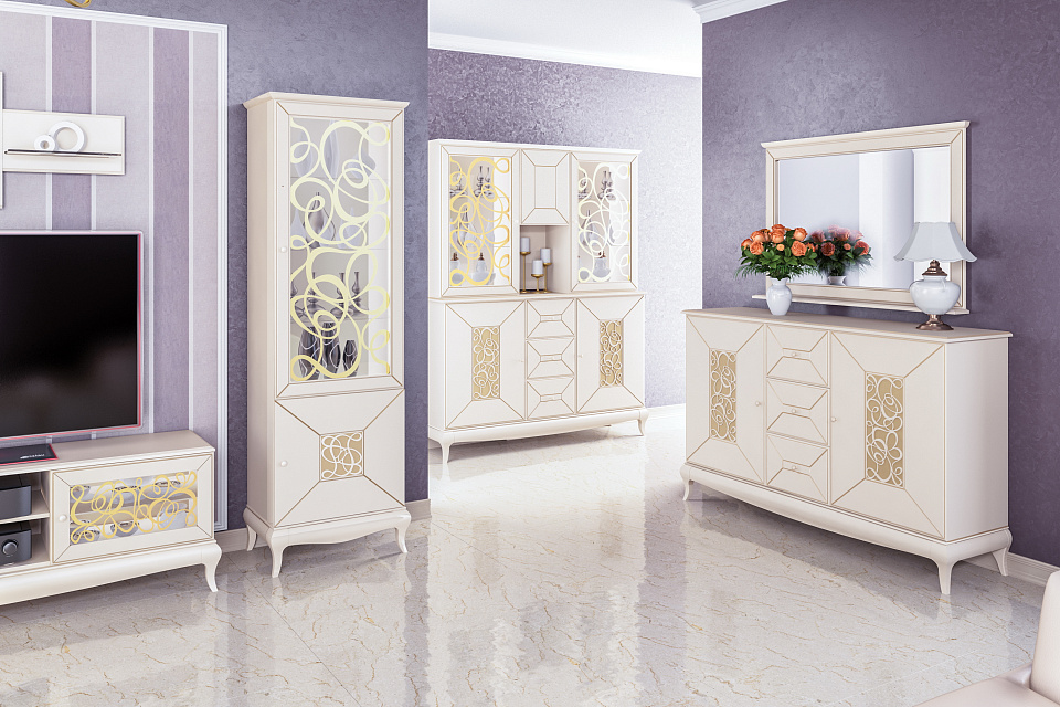 Мебель для гостиной Гармония - это компромисс для тех, кто хочет объединить комфорт и уют традиционного декора и чистые линии и нейтральные тона современного дизайна. Нежное сочетание пастельных тонов создает романтичное, весеннее и легкое настроение.