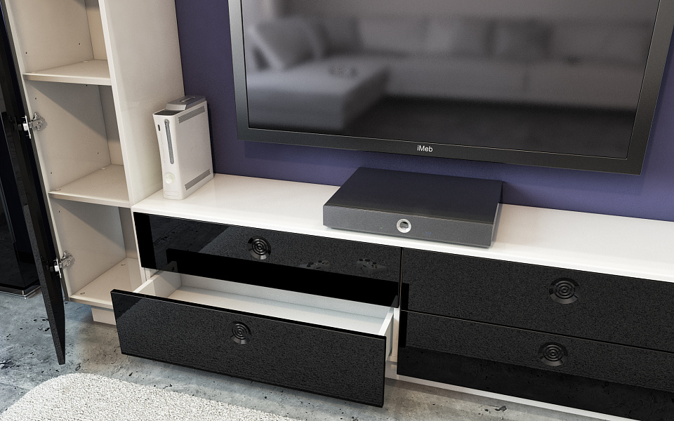 Высококачественный глянцевый МДФ используется не только на фасадах, но и на боковых элементах. Благодаря всему вышеперечисленному, iMeb сможет стать украшением любой комнаты и создать в ней атмосферу модерна и красоты.