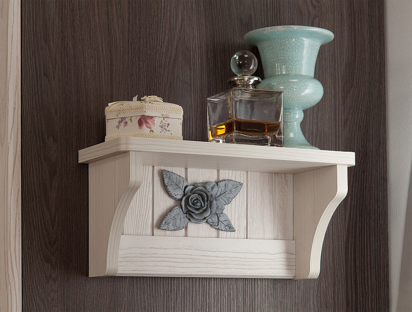 Украшение интерьера – в мелочах! Аккуратная маленькая 2 Полка навесная поможет создать неповторимый декор в любимом стиле. Она крепится к стене и боковинам мебели, выдерживает нагрузку до 5 кг. Полку можно установить вверх дном и получить новое интересное решение. 7 Декоративный элемент Роза продается отдельно и крепится к полке по желанию.