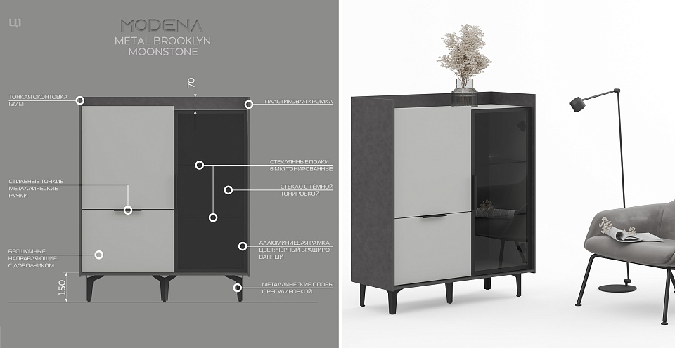 Цвет фасадов : Металл Бруклин, Лунный камень