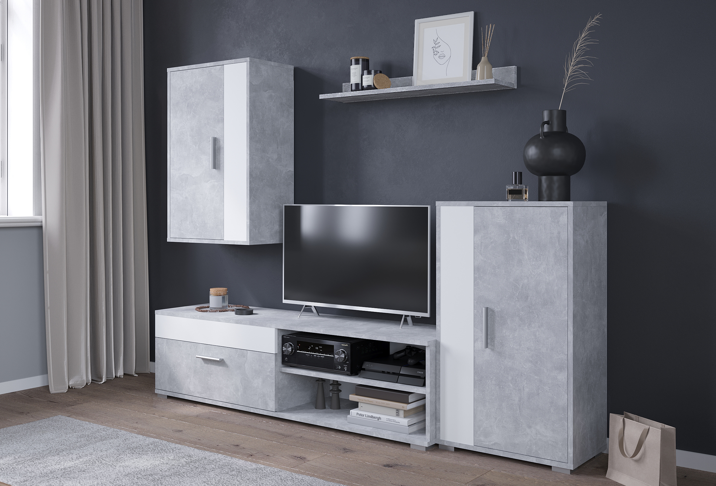 Стенка Neo-4 Бетон/Белый платинум