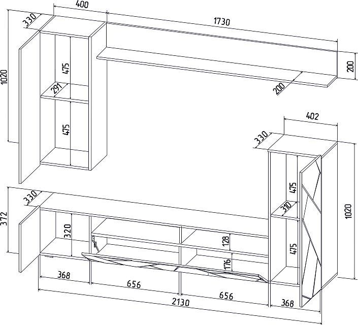 Стенка Neo-5 Пепел/Белый платинум