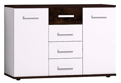 Основной декор гостиной НОРВУД — белый. Именно он отвечает за визуальное расширение пространства и освещения. Контрастные горизонтальные поверхности толщиной 22 мм в декоре Орех Шоколадный разбавляют белые фасады модулей.