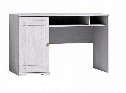 Классический письменный стол можно поставить в гостиную или кабинет. Широкая столешница позволит удобно разместиться с ноутбуком и бумагами. После работы их можно убрать на полку под столешницей. В боковой тумбе две полки, регулируемые по высоте. Их можно не устанавливать и в свободную нишу поставить компьютерный процессор.