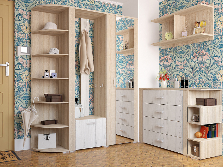 Набор Коламбия-6 создан для прихожей. Вариант обладает богатой древоподобностью и уникальной фактурой. А декоративные панели, объемные плиты, комбинированные в контрасте дверей и свежей фурнитуры, выделяют коллекцию Коламбия.