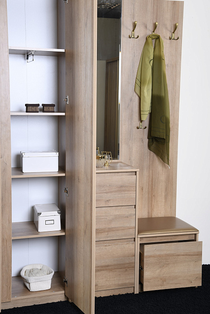 Пусть гости заглядывают в любое время - в Вашей прихожей всегда порядок! Стильная древесная текстура продолжает коллекцию мебели в эко-стиле. Модульная прихожая прекрасно впишется и в маленькое пространство. В любом варианте функциональная прихожая "Шервуд" позволит организовать удобное хранение любимых вещей.