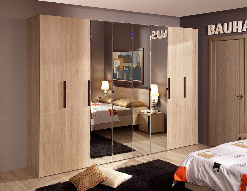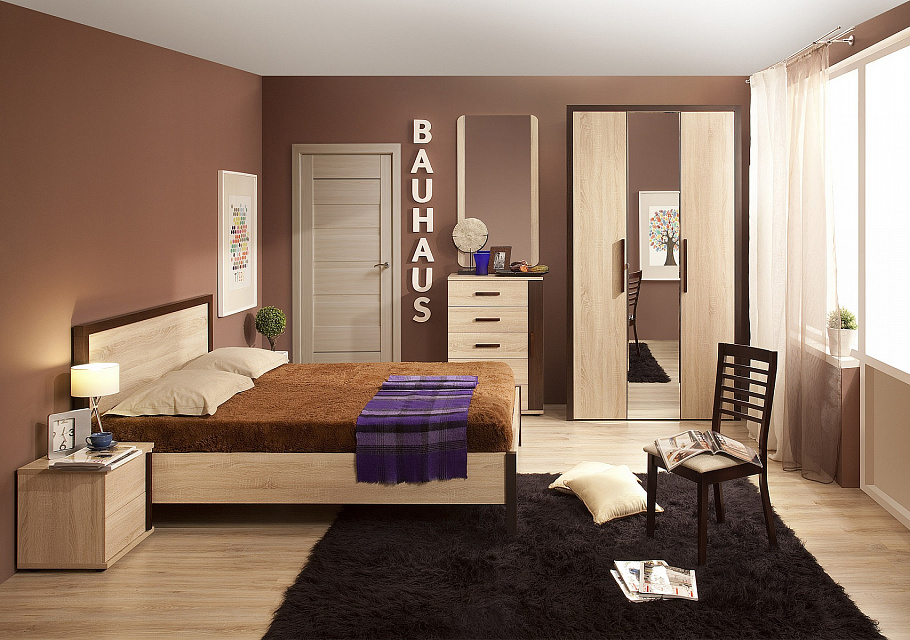 Древесный экологичный декор "дуб сонома" и ручки-штрихи из натурального бука. Лаконичная и функциональная, коллекция для спальни Bauhaus найдет своих поклонников среди людей, которым близки идеи порядка, «чистого листа», свободы для творчества. Мебель коллекции настолько гибкая и органичная, что она не диктует сопутствующий интерьер: вы можете оформить спальню в любой цветовой палитре и Bauhaus прекрасно будет себя чувствовать в этом оформлении.