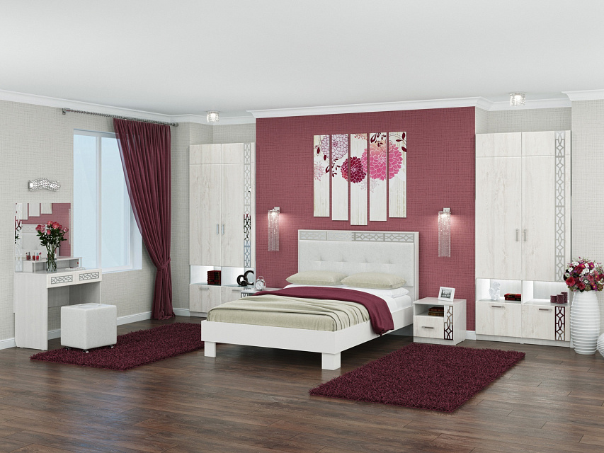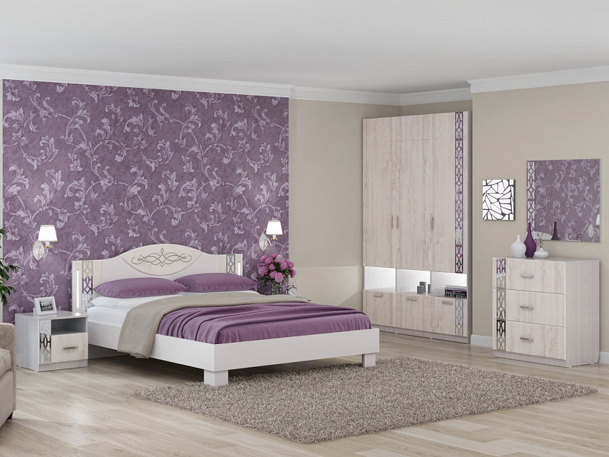 Спальня - одна из самых важных комнат в доме. Здесь мы отдыхаем и восстанавливаем силы. Именно благодаря светлым древесным текстурам и изысканному декору спальни «Белла» Вы сможете создать идеальный интерьер для полноценного отдыха. Спальня "Белла" - это комфорт и индивидуальность. Пескоструйный узор на зеркалах, патина, подсветка в нишах шкафов и спинке кровати помогут создать неповторимую атмосферу и особый стиль в Вашей спальне.