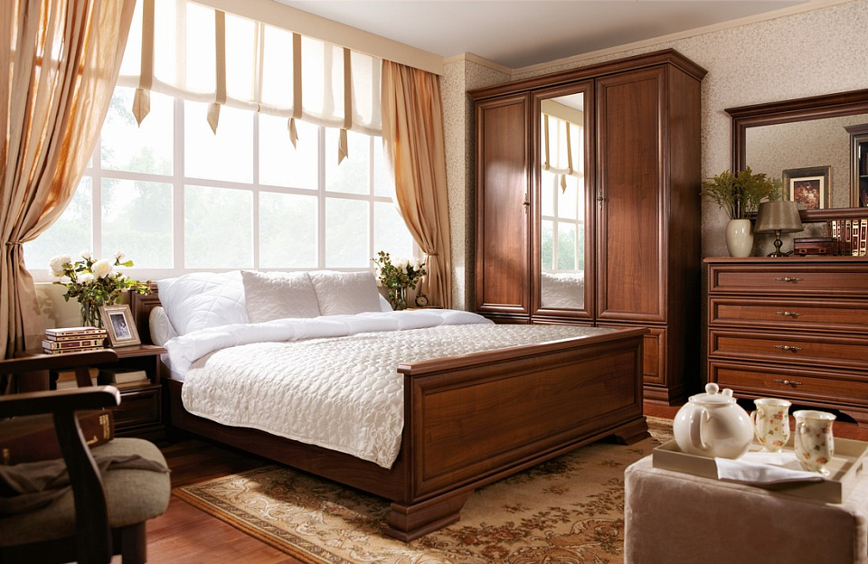 Мебель классического стиля, отличающаяся природными цветами, фактурой. Она настолько универсальна, что без проблем может вписаться в любой современный дизайн. Теплый оттенок каштана, декоративная планка МДФ в фасадах элементов, изящная фурнитура идеально подчеркнут классический стиль набора.