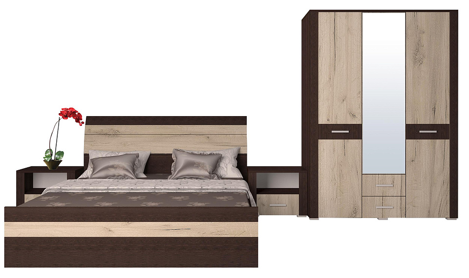 Набор Коламбия-4 - это уютное решение для вашей спальни. Вариант обладает богатой древоподобностью и уникальной фактурой. А декоративные панели, объемные плиты, комбинированные в контрасте дверей и свежей фурнитуры, выделяют коллекцию Коламбия.