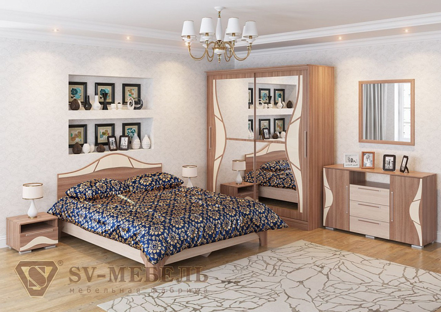 Спальный гарнитур Лагуна 5 - это новинка от SV-мебель, созданная по многочисленным просьбам покупателей. Интересный и стильный дизайн гарнитура никого не оставит равнодушным. Неповторимость и особую изюминку ему придает декорация фасадов стеклом лакобель. Вся серия является модульной, что позволит создать идеальный образ спальни.