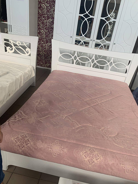 - «Изюминкой» спальни являются сквозная фрезеровка на МДФ, которая придаёт лёгкость и воздушность изделию.