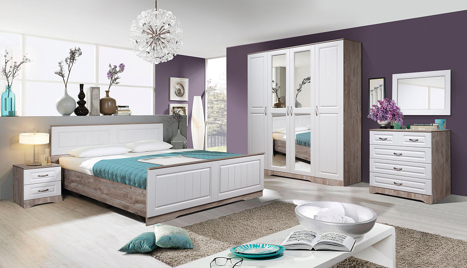 Светлая и просторная спальня Марсела отразит легкость и чувство стиля вашей комнаты. Цвет элементов мебели "дуб полярный" и "дуб юкон" идеально гармонируют друг с другом и характеризуют экологичность комплекта.