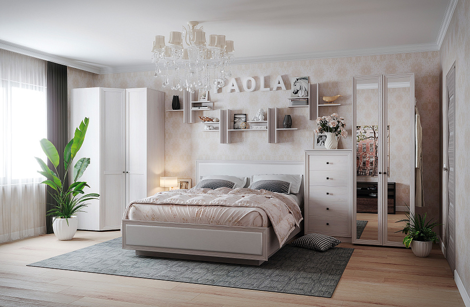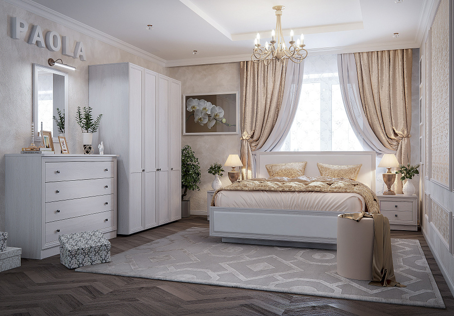Утреннее пробуждение станет легким и приятным в изысканной и элегантной спальне Paola. Белоснежная обстановка будет приятно играть с лучами утреннего света, наполняя комнату светом и простором.