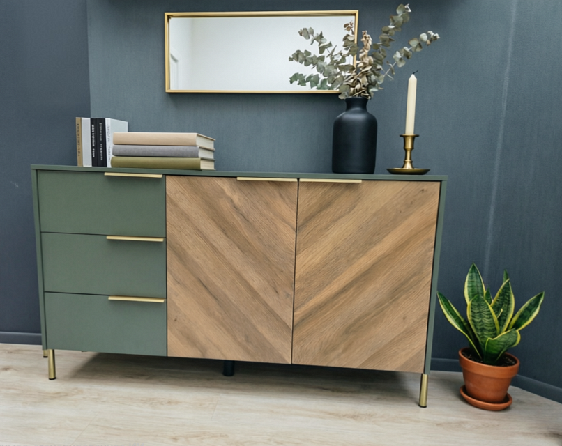 Коллекция SIENA — практичная и современная мебель для жилого пространства. Натуральная древесная текстура в сочетании с мягким зелёным оттенком создаёт стильный и индивидуальный интерьер.