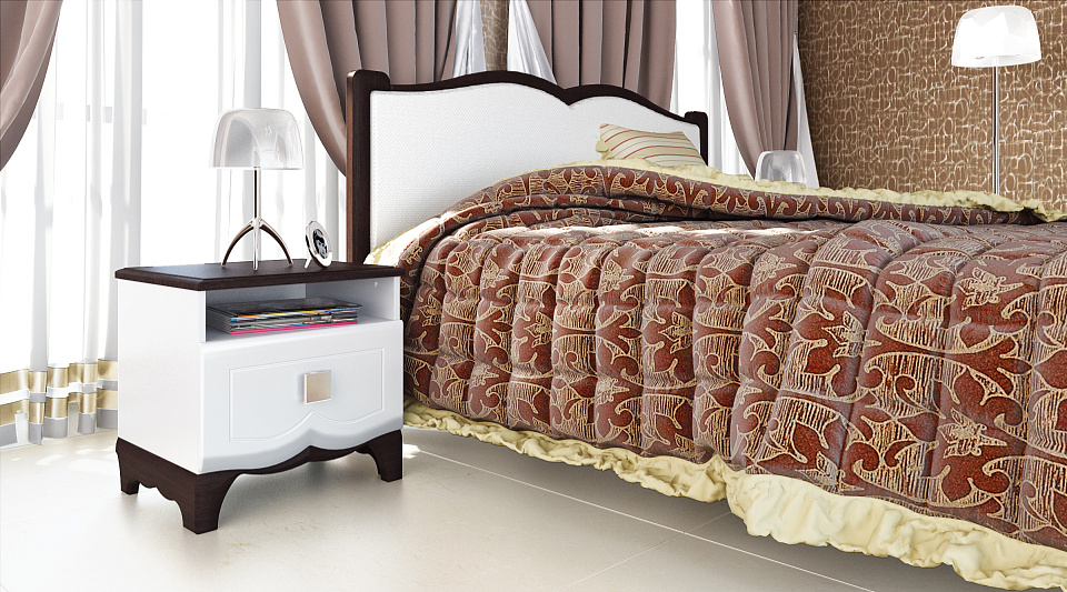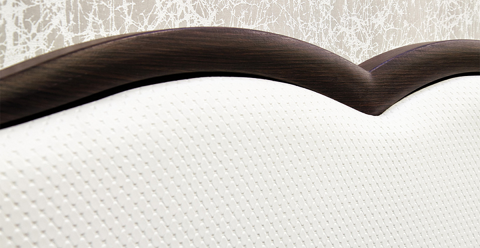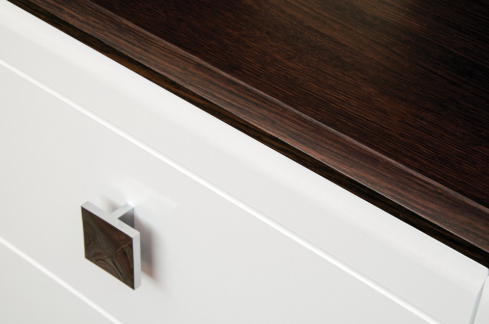 Спальня Тиффани выполнена в контрастном сочетании цветов "белый глянец" и "венге". Особенность коллекции - мягкое изголовье кровати из экокожи. Это прочный и удобный в быту материал: экокожа не рвется и легко моется. Так же кровать укомплектована ортопедическим деревянным основанием.