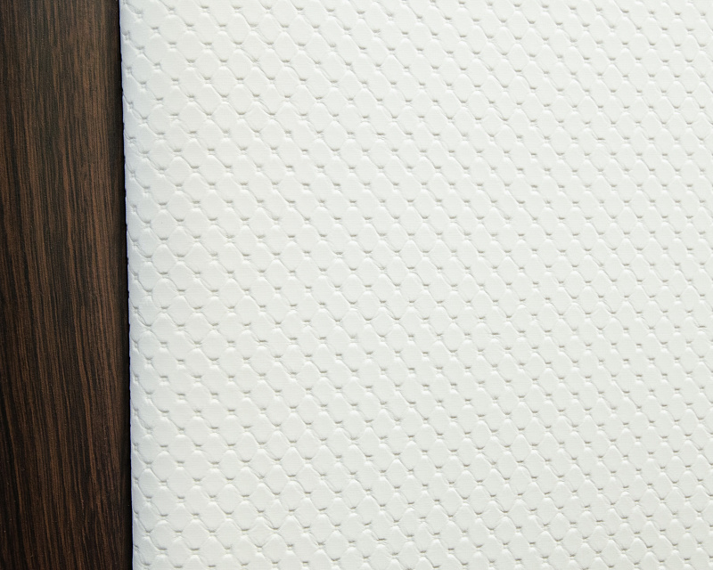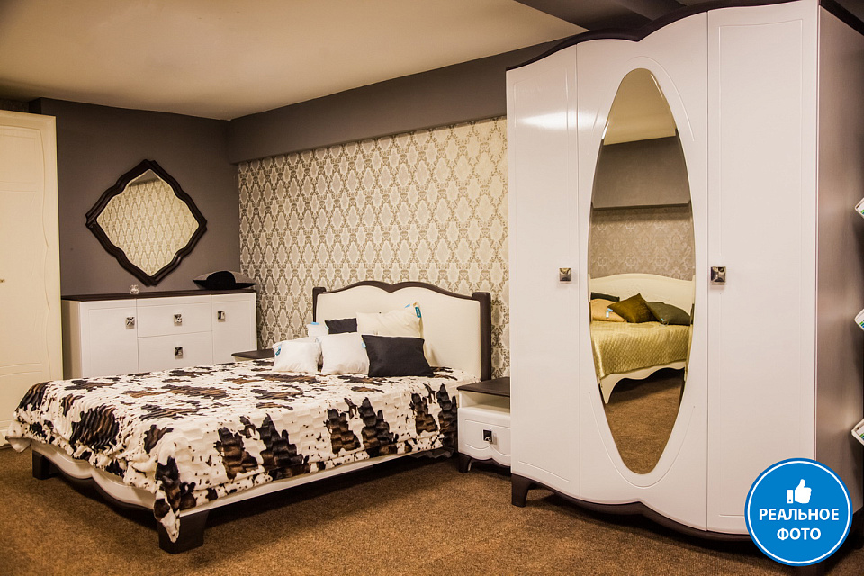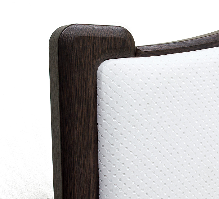 Стильный внешний вид, контрастное сочетание белого и темного цветов. Мягкая спинка кровати из ЭКОкожи, декоративная гравировка фасадов, ортопедическое основание в комплекте.