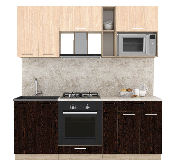 Кухня Мила Дуб молочный+Дуб венге Интерлиния