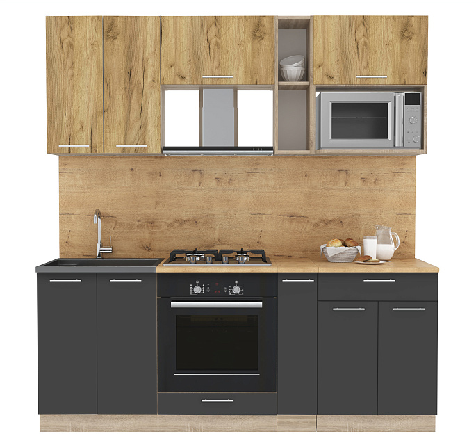 Кухня Мила Дуб золотой+Антрацит Интерлиния