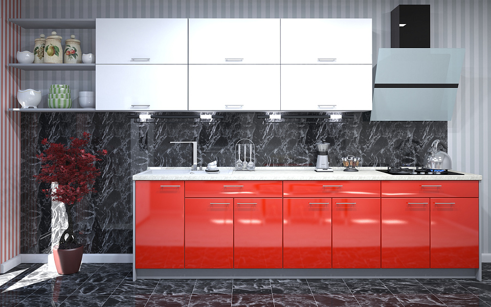Кухня Мила Глосс Белый/Красный Интерлиния