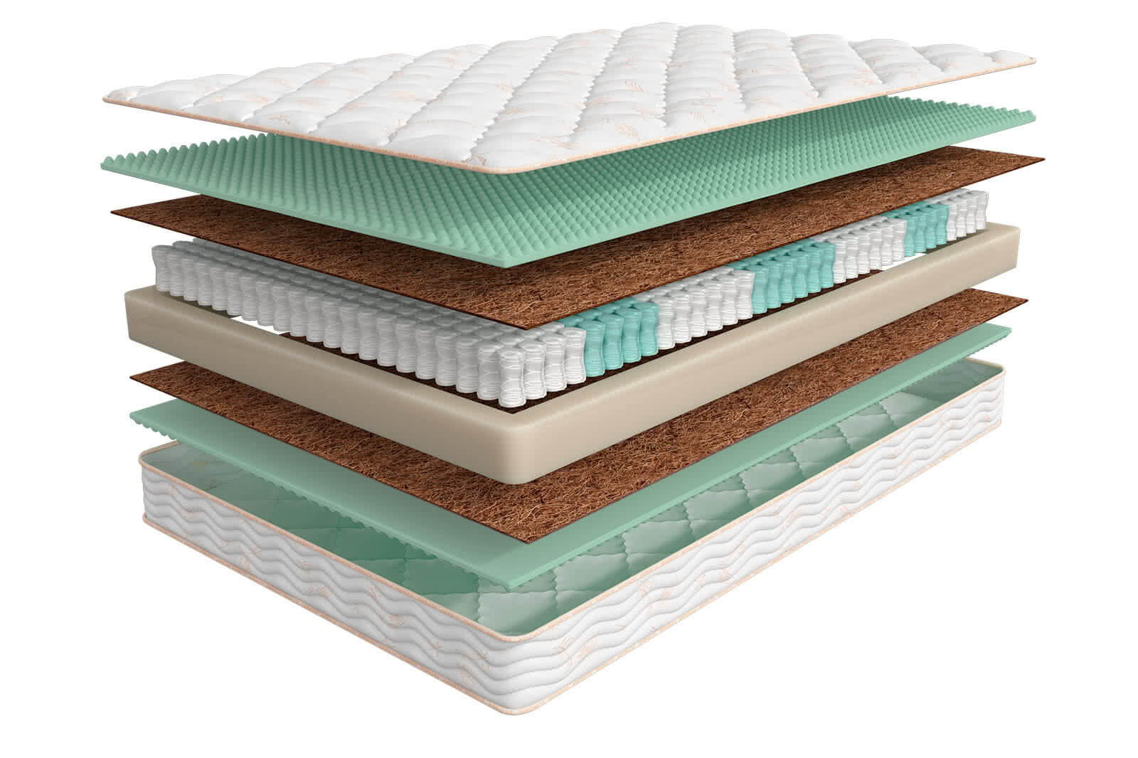 Кокосовая койра, Пенополиуретан, Блок независимых пружин, Чехол, Войлок, Трикотаж