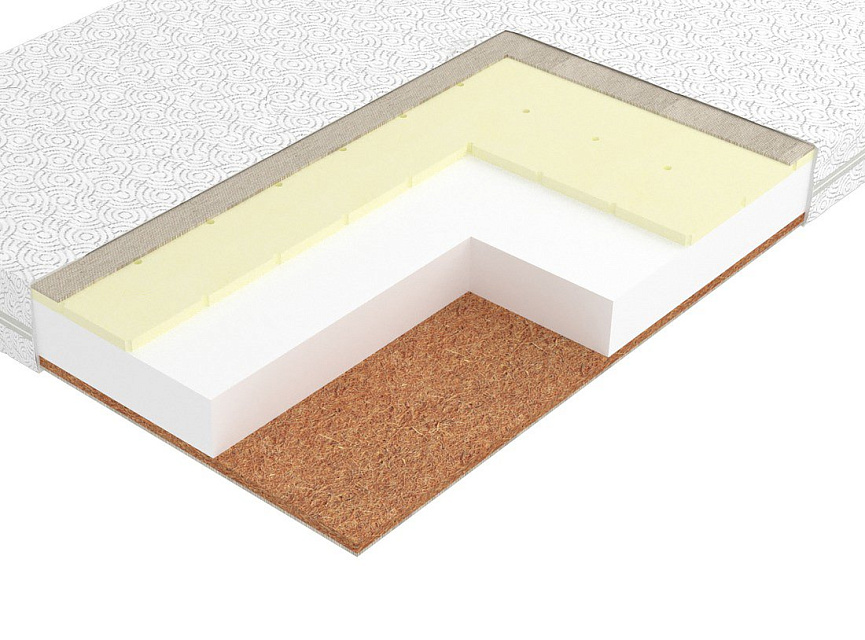Натуральный гипоаллергенный материал. Благодаря пропитке из натурального латекса, волокна прочно скреплены в цельную плиту. Кокосовое волокно придает матрасу жёсткость и обладает бактерицидными свойствами. Производство – Enkev, Польша.