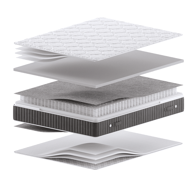 Блок независимых пружин, Пенный эластичный материал SonaFoam, Плотное изолирующее полотно FiberTerm, Трикотаж