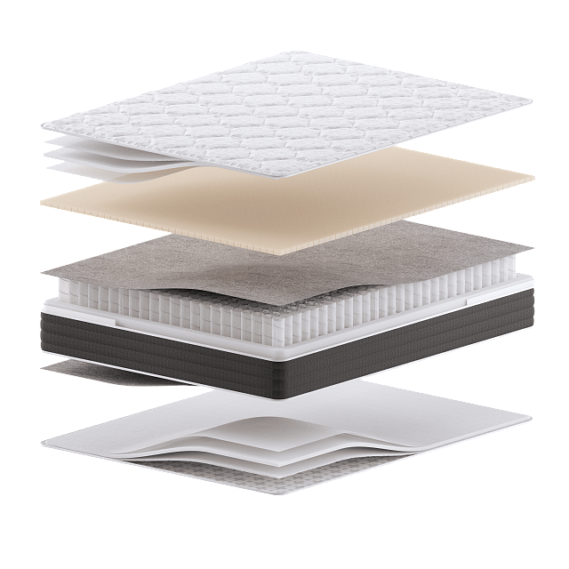 Латекс, Блок независимых пружин, Пенный эластичный материал SonaFoam, Плотное изолирующее полотно FiberTerm, Трикотаж