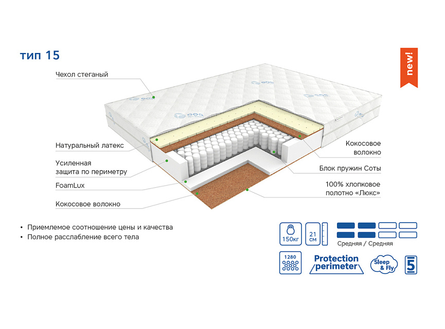 Кокосовая койра, Латекс, Блок независимых пружин, Чехол, FoamLux