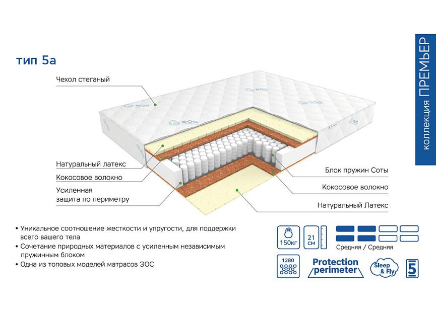 Кокосовая койра, Латекс, Блок независимых пружин, Чехол